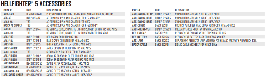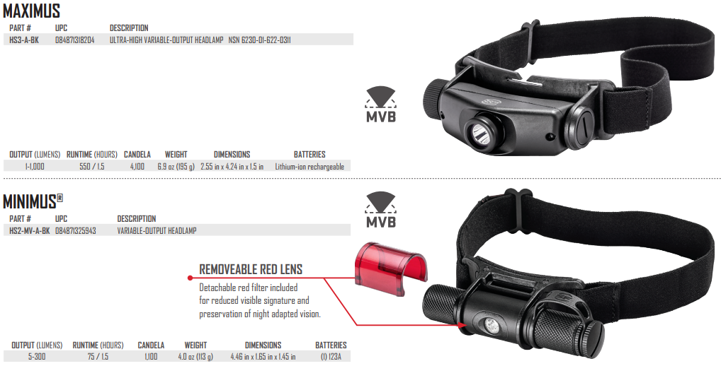 모든 자료 출처는 슈어파이어 카탈로그 및 슈어파이어 홈페이지입니다.
