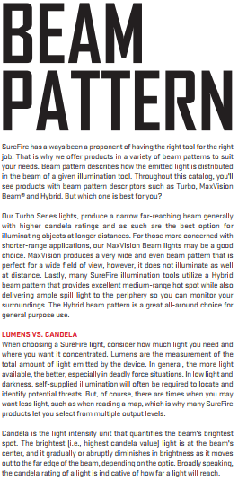 슈어파이어 카달로그에서는 크게 3종으로 빔 패턴을 구분하고 있는 데, Turbo, Hybrid, Maxvision 이네요.